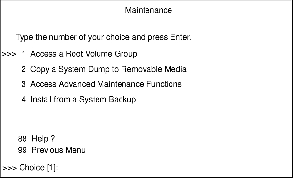 The procedure in this section describes how to access a system that will not boot from the hard disk. Read Troubleshooting an Installation from a System Backup for instructions if a mksysb backup tape fails to boot.