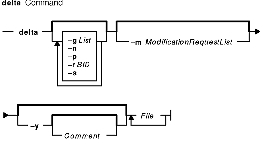 delta [ -r SID ] [ -s ] [ -n ] [ -g List ] [ -p ] [ -m ModificationRequestList ] [ -y [ Comment ] ] File ...