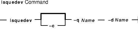 The lsquedev command displays the name of the queue stanza and associated attributes from the /etc/qconfig file.