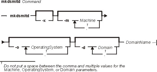 mkdsmitd [ -x ] [ -m Machine [ ,Machine ] ... ] [ -o OperatingSystem [ ,OperatingSystem ] ... ] [ -d Domain [ ,Domain ] ... ] DomainName