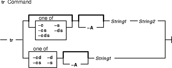 tr [ -c | -cds | -cs | -ds | -s ] [ -A ] String1 String2