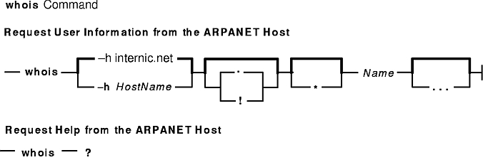 whois [ -h HostName ] [ . | ! ] [ * ] Name [ . . . ]